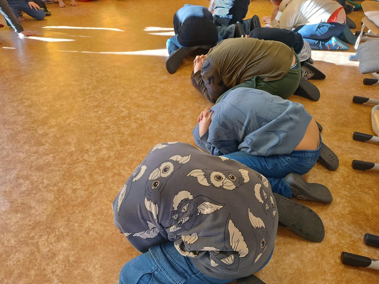 Kačka nám dala domácí úkol,že máme naučit rodiče schoulet se do klubíčka před zlým psem a jak koukat na psa, aniž by o nás věděl. Nakonec jsme si mohli s dovolením Kačky Angi pohladit.