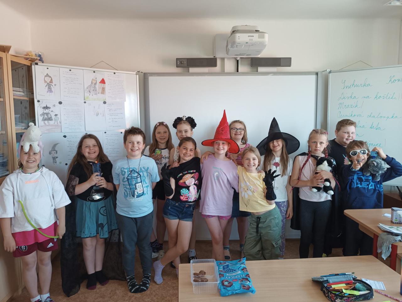 Dnes jsme ve škole prožili dopoledne, během kterého jsme se proměnili v čaroděje a čarodějnice. Žáci 3.a 4.roč. přišli oblečeni v čarodějnických doplňcích a zúčastnili se různých aktivit, včetně kreslení a popisování čarodějnických postav. Na závěr si každý odnesl průkaz čaroděje a čarodějnice.