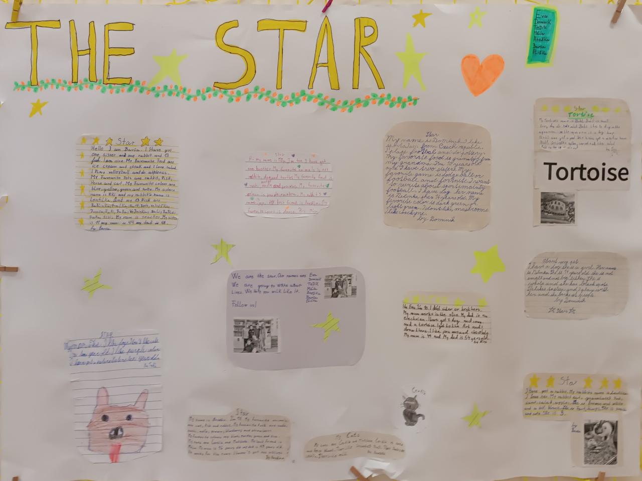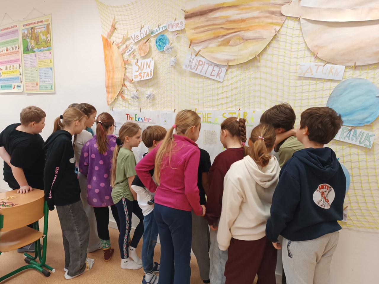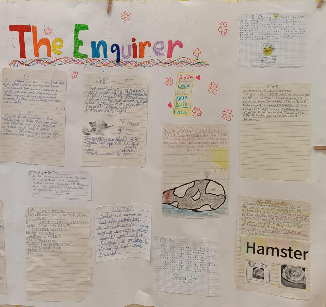 I letos jsme se pustili v angličtině do psaní třídních novin. Máme dvě "konkurenční" redakce The Star a The Enquirer. Při psaní článků využíváme v praxi slovíček a gramatiky, které jsme se naučili. Čtvrťáci a páťandy