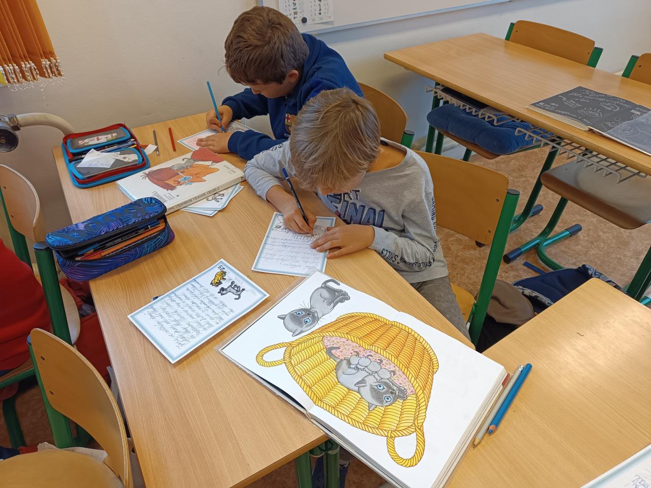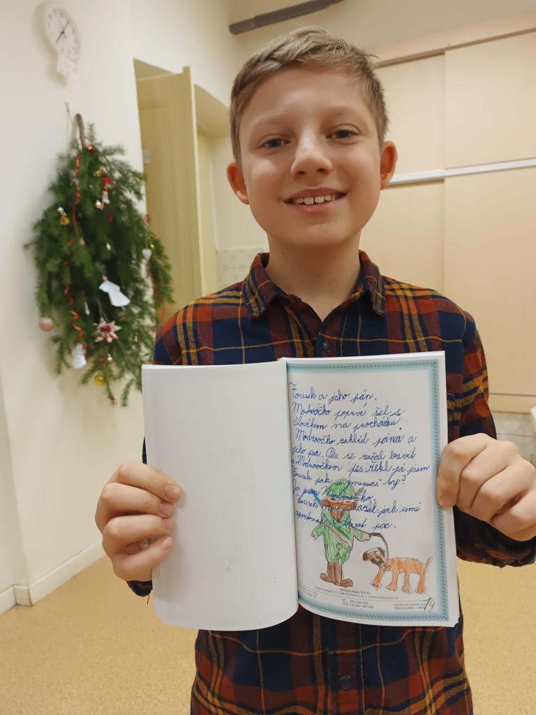 Před Vánoci jsme dočetli knihu Z deníku kocoura Modroočka, která se všem moc líbila. Je škoda, že nemáme možnost těšit se na druhý díl. Kromě toho jsme napsali vlastní knihu, kterou jsme o Vánocích darovali rodičům. Měli velkou radost.